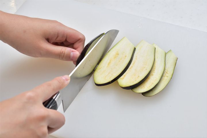 1. なすを縦に薄切りにして、水(分量外)につけてアクを抜く。
