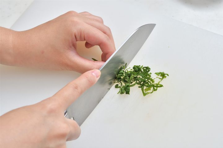 2. [A]の調味料をすべて混ぜ合わせておく。青じそを千切りにする。