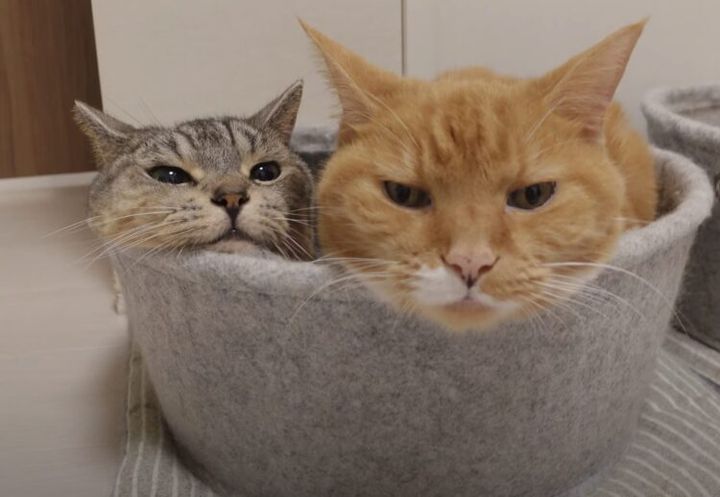 3. 猫用ベッドは2つあるけれど、一緒にくっついて1つを使う方が良いニャ!
