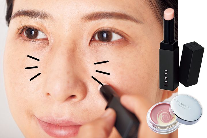 右上/植物オイル配合で凹凸をふっくらさせる。コンパクトで持ち運びも便利。THREE エアリフトスムージングワンド¥4,180 (THREE)