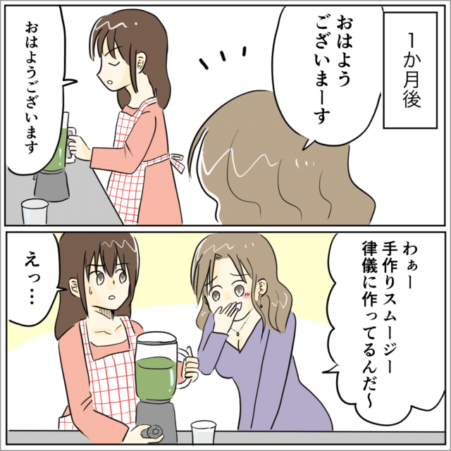 「えっ?」何を言っているのかわかりませんでした。ユウコさんがウチに来たばかりでまだ家事をしていたころ、手作りスムージーを完璧に作っていて内心すごいと思ったのに。