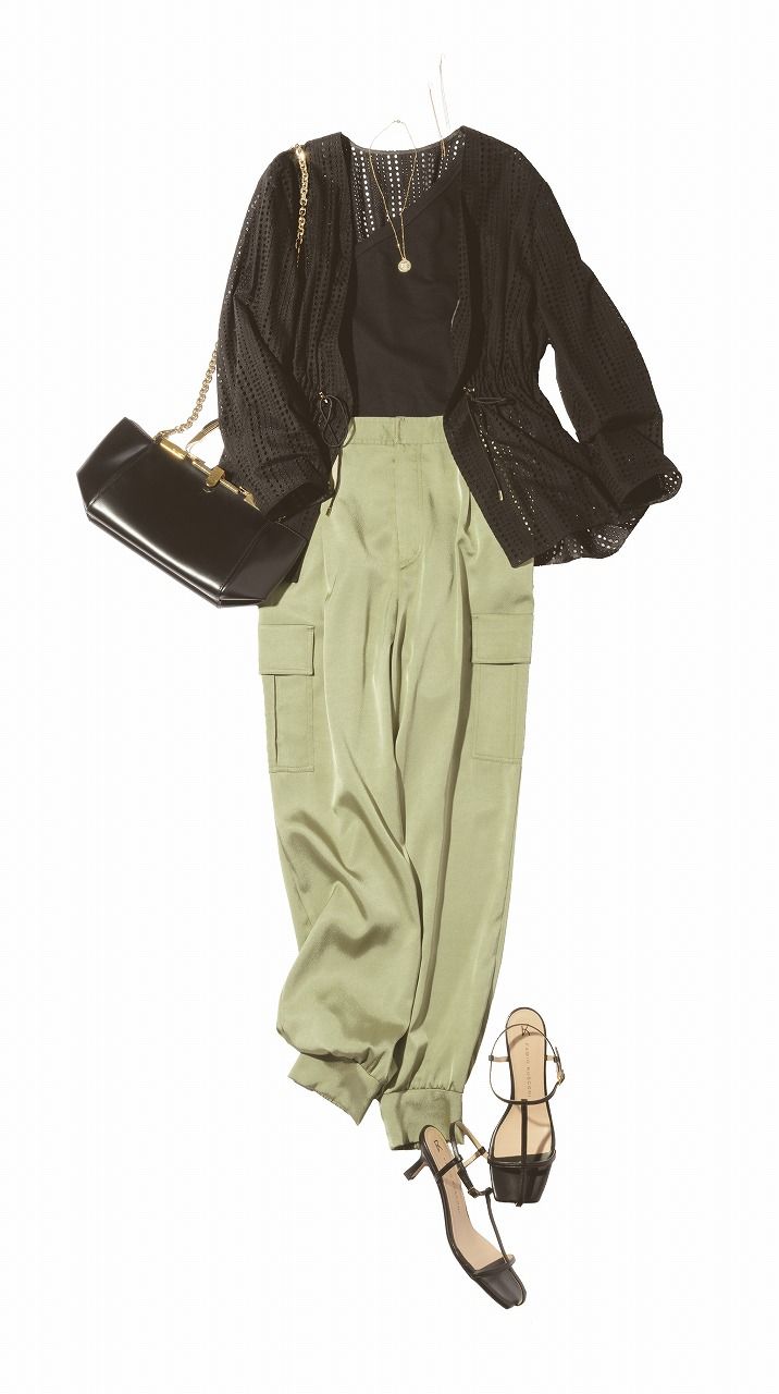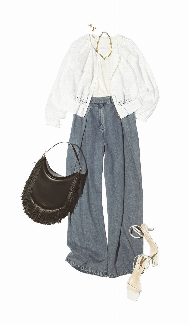 ブルゾン¥59,400(ANAYI)Tシャツ¥8,580(スローン/ザ ショップ スローン 新静岡セノバ店)パンツ¥36,300(Jakke/ジャック・オブ・オール・トレーズ プレスルーム)バッグ¥198,000(J&M デヴィッドソン/J&M デヴィッドソン カスタマーセンター)靴¥14,850(ダイアナ/ダイアナ 銀座本店)ピアス¥22,000(ハイク/ボウルズ)ネックレス¥105,600(ブランイリス/ブランイリス トーキョー)