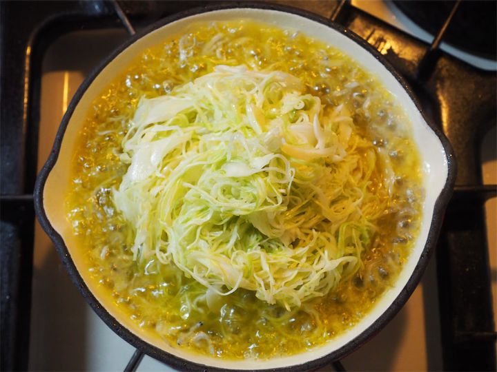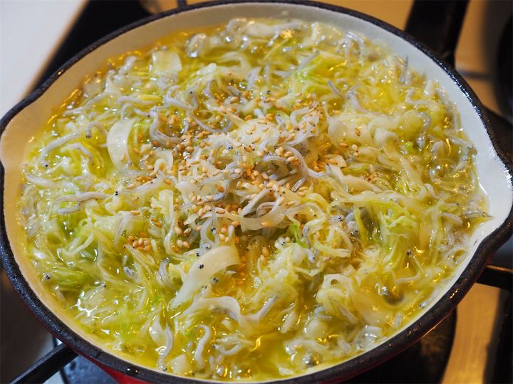 最速10分!「キャベツとしらすの塩アヒージョ」作ってみた