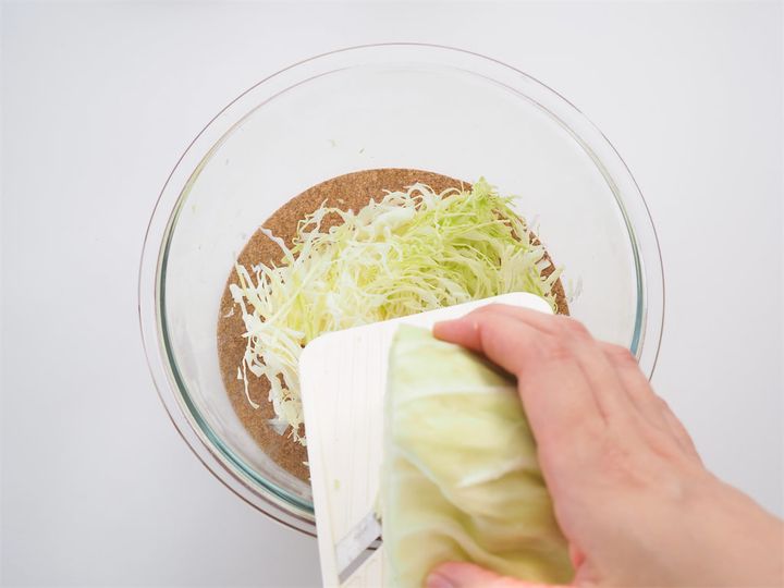 今回キャベツは、スライサーで楽々千切り。少し食感を楽しみたい方は包丁で太めに切るなど、工夫してもいいかも知れません♪