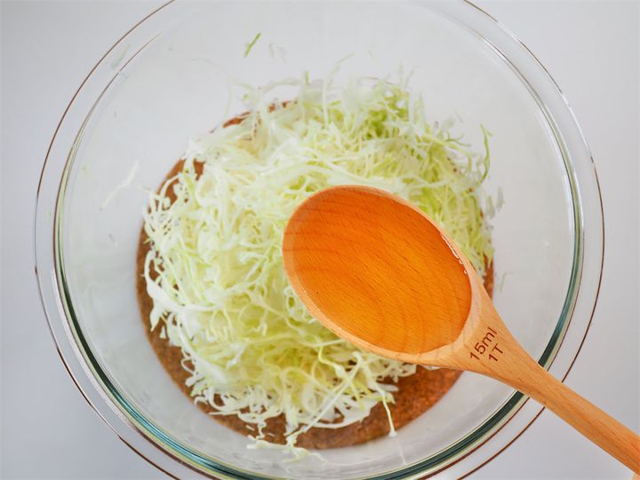 キャベツから滲み出た水分も一緒に入れてしまいましょう。
