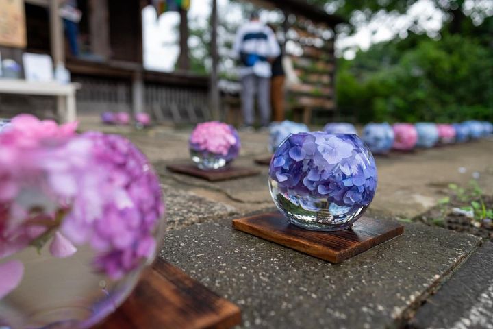 他にもアジサイの季節で人気なのが、「アジサイガラスボール」。SNSで人気に火がついてこちらも有名です。コスモスの季節以外でも私たちを楽しませてくれる花とお寺のコラボレーション。奈良に訪れる際はぜひ立ち寄ってみては?