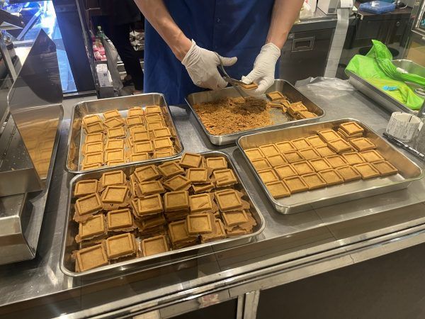 オープンから9月3日(火)までの7日間は、常設店舗の隣で、焼きたて商品を販売する特別催事も開催しています。都内でも限られた店舗でしか味わうことができない、サクサクでバターの風味が引き立つ人気の「焼きたてバターサンド」を目の前で作っていました!