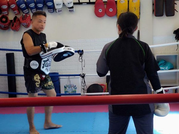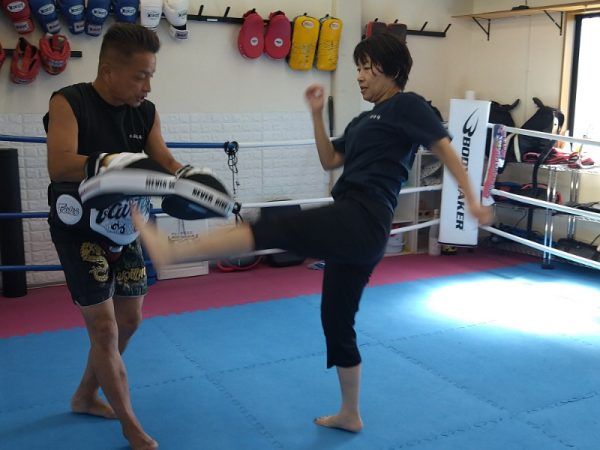 そして、2種類のキックの練習。パンチの時もそうでしたが、教えて頂いた時には理解できるんだけど、いざ身体を動かすとなると上手く動かないんですよね~。運動神経の問題かしら。