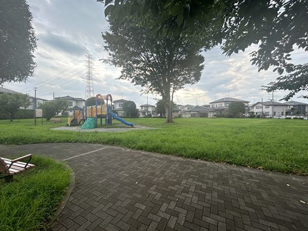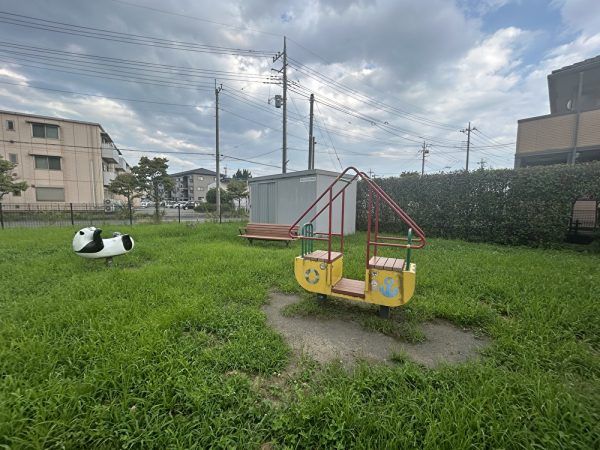 安又大隅公園は住宅街やお店や通りに面していますが、それを感じさせないほどの広々とした公園です。雨上がりでお写真が暗くなってしまいすみません。雨が降って芝が生き生きしていますね。