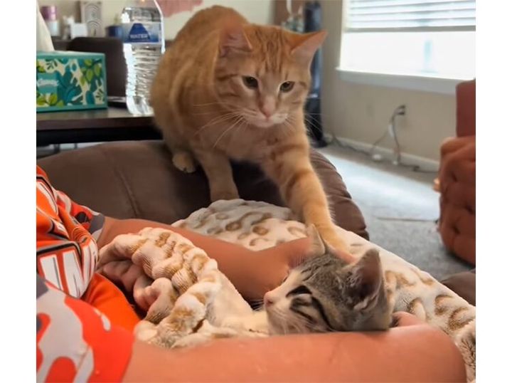 3. 「ひとりだけ抱っこされてズルい!」 嫉妬の猫パンチ!