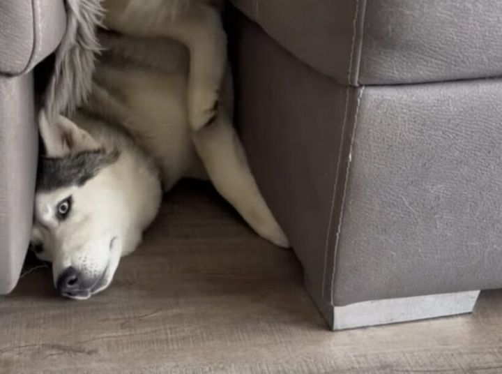3. 猫みたいに狭い場所が大好きな犬さん、隙間に入って満足そうな顔!