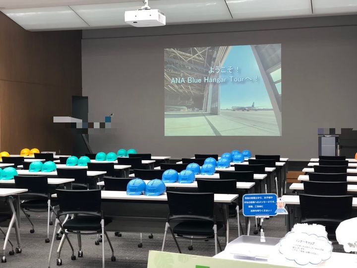 工場見学ツアーの始まりは、ANAの整備部門ついてや工場見学の注意点などについて、映像で説明があります。