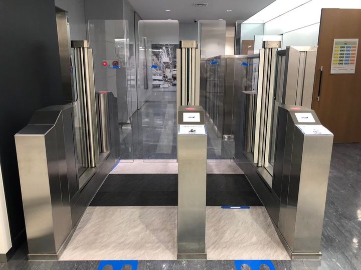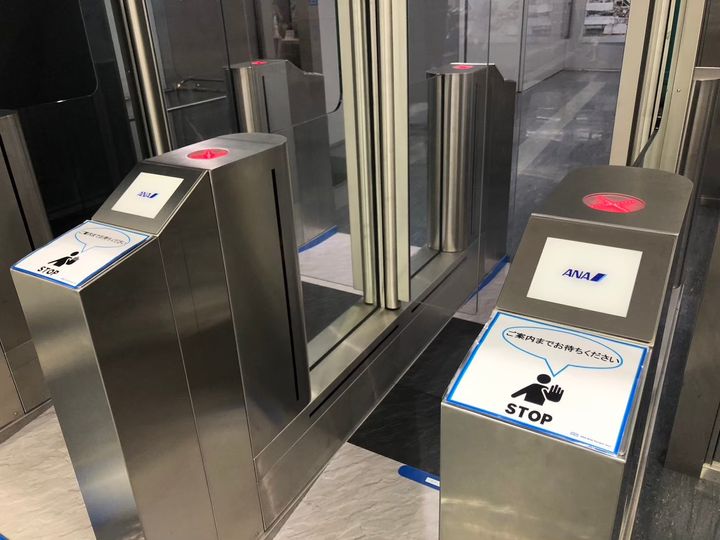 建物に入ると、まず最初に受付を行うのですが、まるで空港でチェックインしているかのよう!