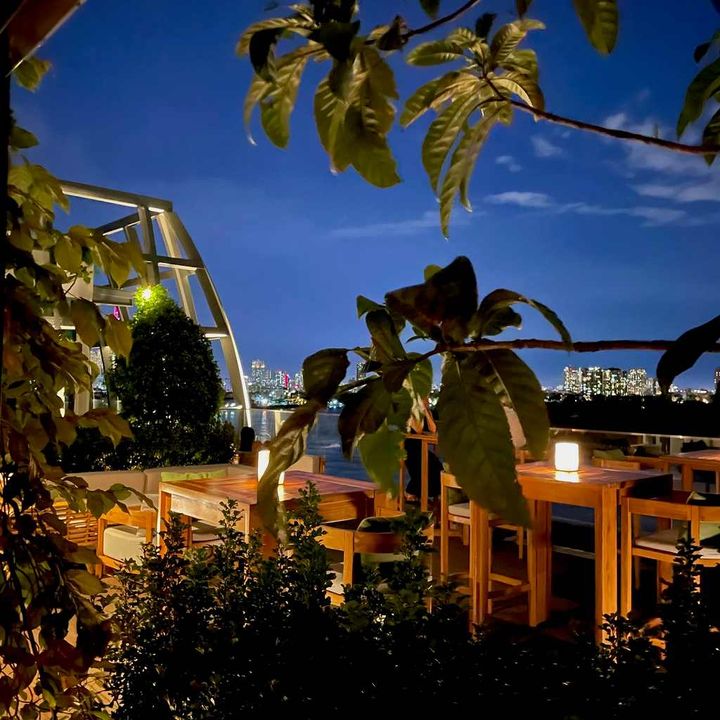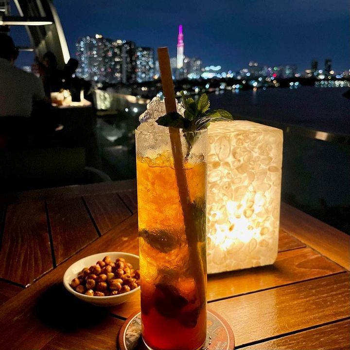 周辺には大きな道路や建物がないので、屋外なのに静かで美しい夜景にリラックス度もMAX!サイゴン川からの夜風も気持ちよくて最高です。