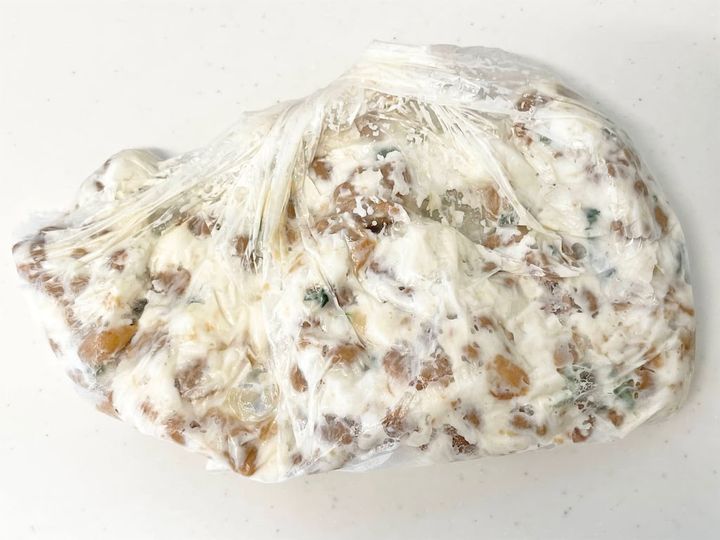 なめらかになるまでよく揉んで混ぜ合わせます。