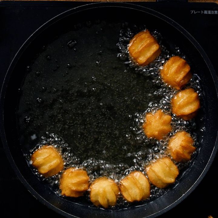5: きつね色になるまで揚げます。