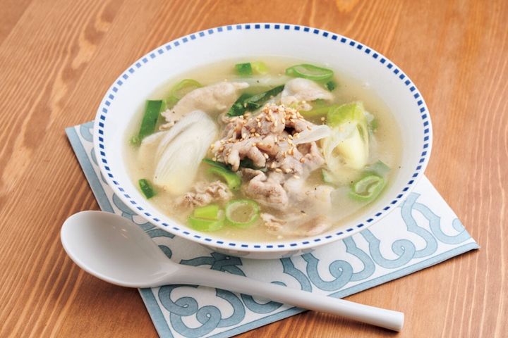 メインの材料は豚バラ肉と長ねぎだけというシンプルさながら、付け合わせの汁物ではなく、メインのおかずにもなりそうなボリュームのある豪華なスープ。