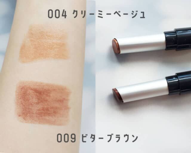 おすすめのカラーは、ミュートメイクにもぴったりの“004 クリーミィベージュ”と、秋らしい深い色みで一気に大人っぽい雰囲気に仕上がる“009 ビターブラウン”。赤みをあまり感じないので、品よく旬な洒落顔に引き上げてくれます。また、独自のロングラスティング処方なのでなかなかメイク直しができないときにも心強いです。