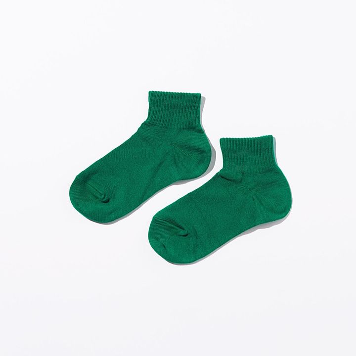 ほどよく厚みがあり耐久性に優れた、くるぶし丈のショートソックス。サイズ展開は22-25cmで婦人用。カラバリはみどりのほかに、ライムイエロー、むらさき、ローズピンクの4色。※店舗によって取り扱いが異なる場合があります。