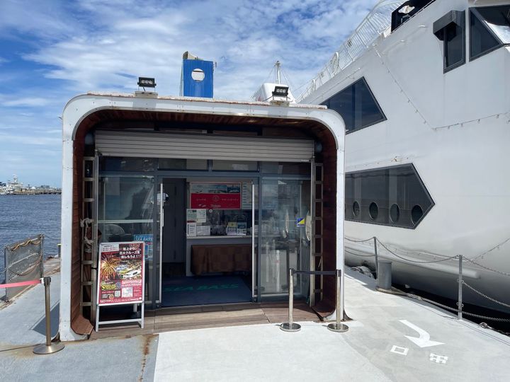 乗り場はみなとみらい線日本大通り駅、馬車道駅からそれぞれ徒歩7分ほどの場所にある「ピア赤レンガ」。「赤レンガ倉庫」1号館の海側にあります。