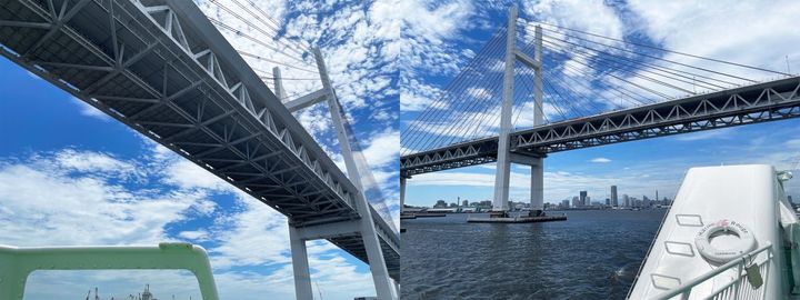 見上げるアングルからのベイブリッジの迫力は、なかなか体験できるものではありません。