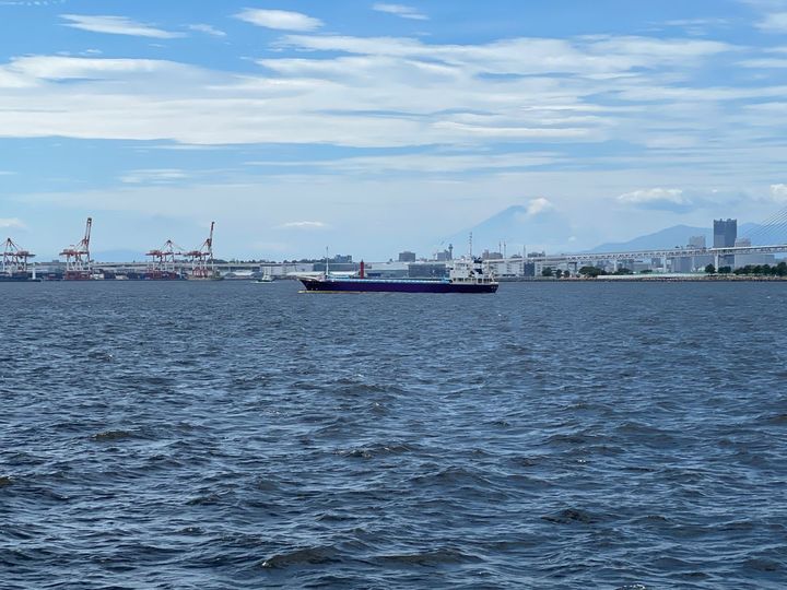 横浜港最大のコンテナターミナルである本牧埠頭のガントリークレーンや、晴れた日には遠くに富士山も拝めます。