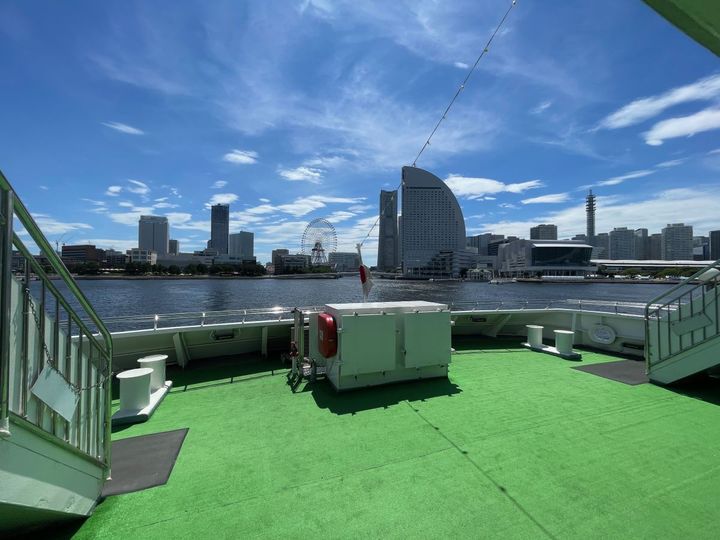 みなとみらいの全景を、海側から見渡すことができる機会はそうそうないもの。貴重でぜいたくな時間を過ごせます。昼は日光が海面でキラキラと反射する光景も楽しめ、心地よい潮風も爽快です。