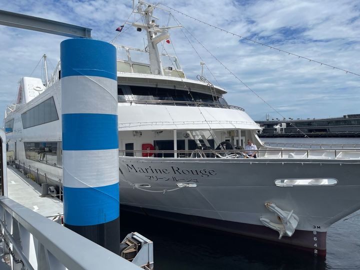 「マリーンルージュ」は、横浜港を周遊するレストランシップ。みなとみらいから大黒埠頭などをぐるりと巡り、横浜の景色を楽しみながら、船上という非日常空間で本格的なフレンチをいただけます。