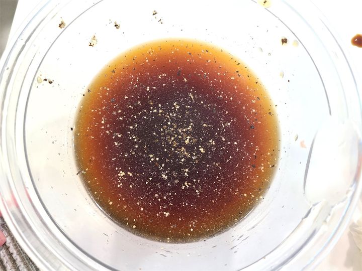 5. 水、オイスターソース、鶏ガラスープの素、料理酒、しょうゆ、ブラックペッパーを混ぜて合わせダレを作っておきます。