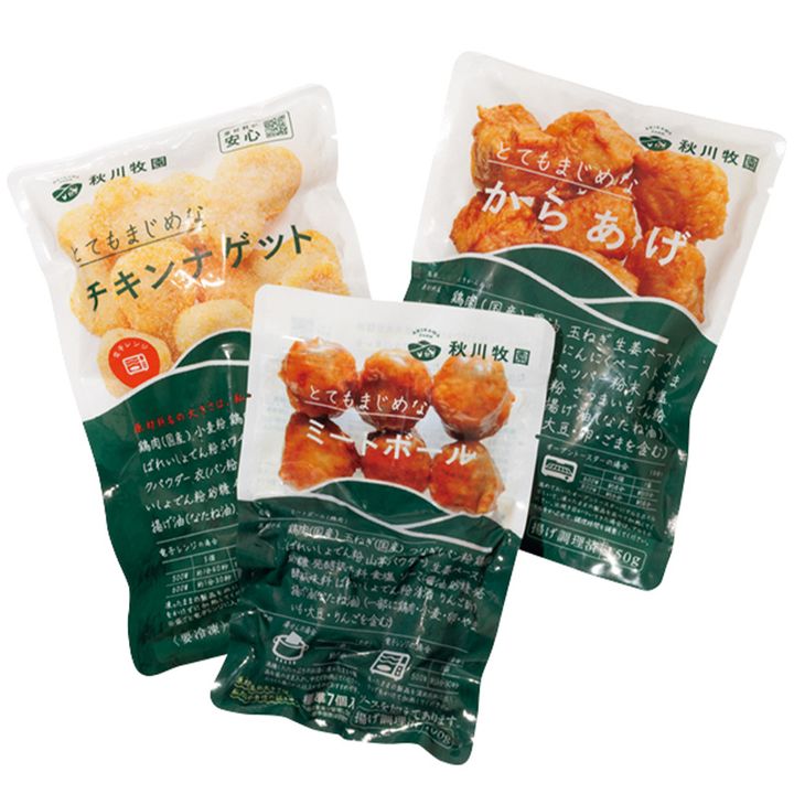 からあげ¥534ミートボール¥259チキンナゲット¥516※すべてオープン価格(すべて秋川牧園)