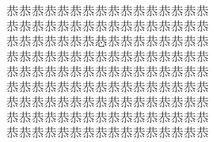 【脳トレ】「恭」の中に紛れて1つ違う文字がある!?あなたは何秒で探し出せるかな??【違う文字を探せ!】