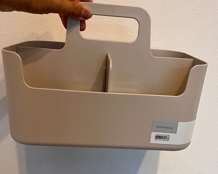 持ち手があるので、棚から机までの持ち運びも簡単。角も丸いので、形も気に入っています。