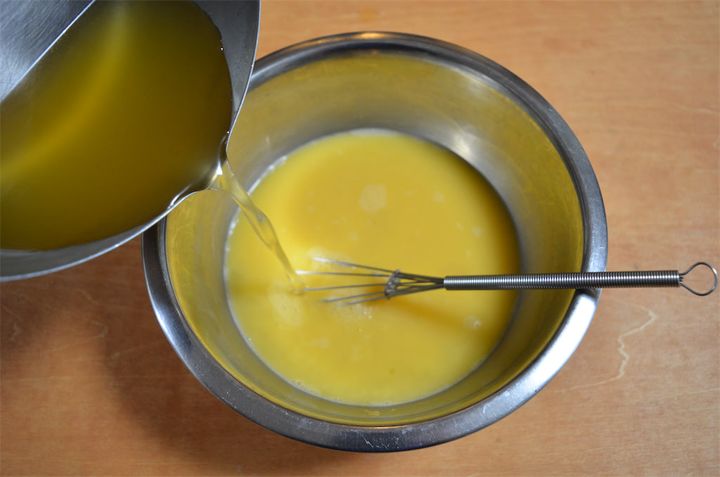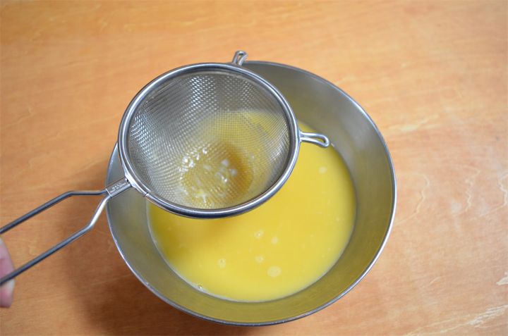 3.ボウルに卵を溶きほぐし、2のスープを加えてよく混ぜてから濾す。
