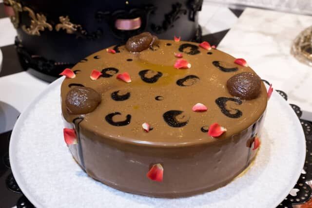 王妃が特に親しい友人だけを招き入れる秘密のサロンで振舞われるスイーツ「王妃のネグリジェ」も味わっておきたい一品。眠気覚ましのコーヒームースをチョコレートムースで覆い、焼きマロングラッセとバラの花びらをトッピングしています。