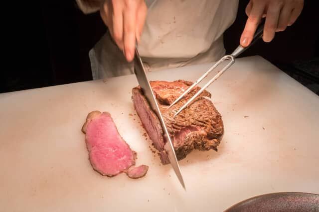 ▲シェフが目の前で切り分ける「サーロインローストビーフ」もゴージャスです