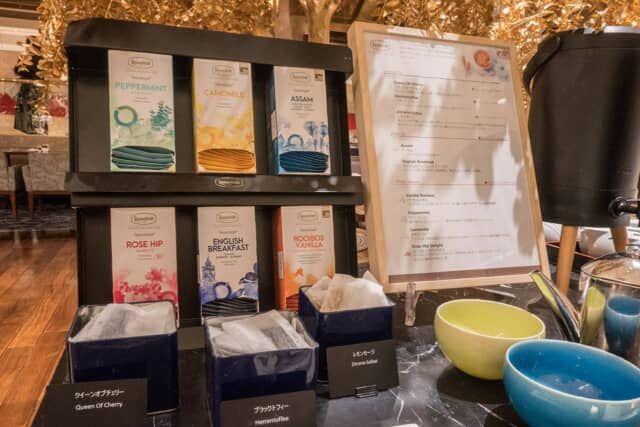 紅茶には、香り立つロンネフェルトが選ばれました。秋にピッタリの「ローズヒップ」や「クイーンオブチェリー」など9種類を用意。コーヒーやウーロン茶など17種類のドリンクも飲み放題です。