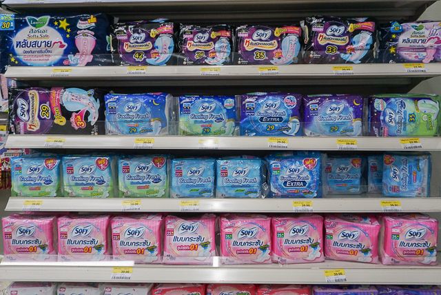 女性へのお土産として話題のクールタイプの生理用品も、こんなにたくさんそろっています。