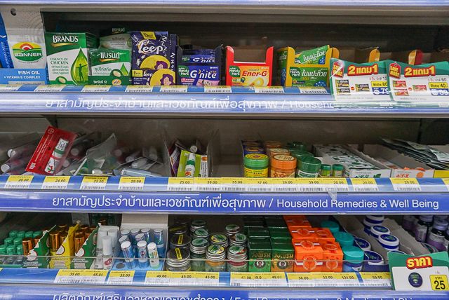雰囲気は日本のセブンイレブンと近いものを感じますが、商品ラインアップは完全にローカライズされています。食品や日用品はもちろん、美容大国・タイらしくコスメ類の多さには驚き。お土産もそろう場所なので、つい長居してしまいそうです。
