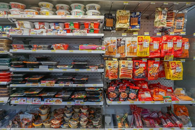 続いて冷蔵コーナーを見てみましょう。ソーセージやお弁当が充実しています。