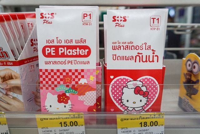 可愛いキャラクターグッズも見つかります。キティちゃんの絆創膏はプチプライスで、お子様へのお土産にもおすすめ。