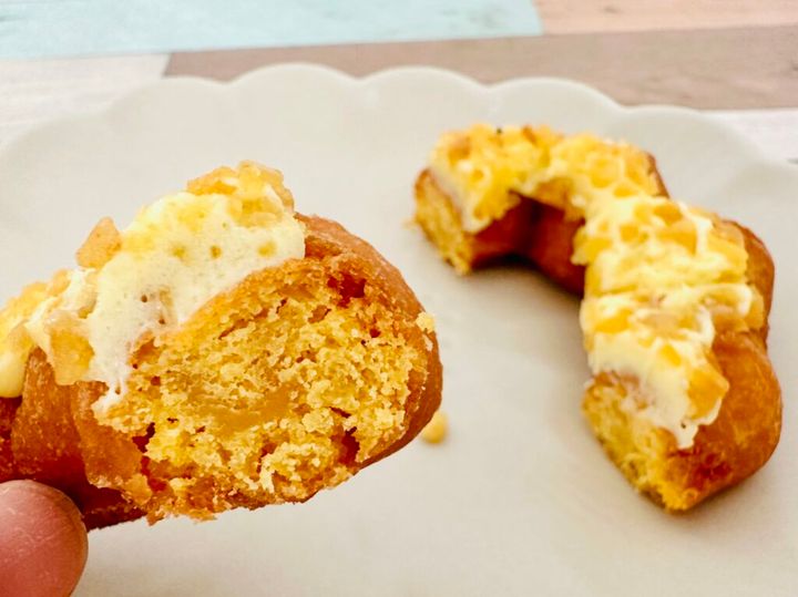 真ん中にドーナツ穴がなく、まるで本物のクレームブリュレのように見えます。このパリパリ部分をもっと贅沢に食べたいと思っていたのは、筆者だけではなかったはず!