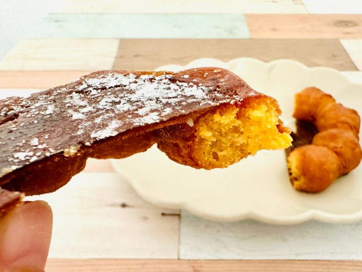 表面のサクっとした軽いドーナツ生地は、ねっとり感となめらかさがあります。「さつまいもド」の生地には紅はるかと安納芋のさつまいも粉末1.1%が使われているそうですよ。
