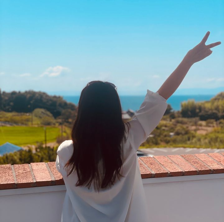 2)レシピヲの入り口横に展望台への階段があります!階段をのぼると、海を眺めることができます。暑い日でも涼しく感じられ、しばらくぼーっとすごすことができました。