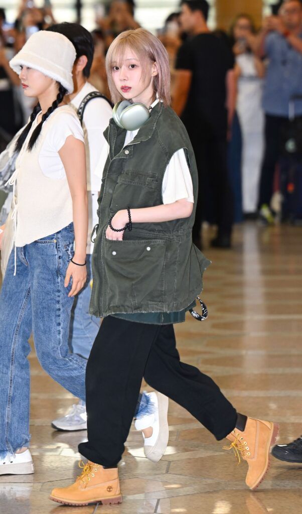 3. 【aespa ウィンター】オーバーサイズ×Timberlandブーツ!NYストリートな空港ファッション