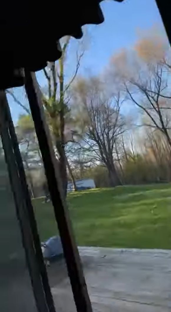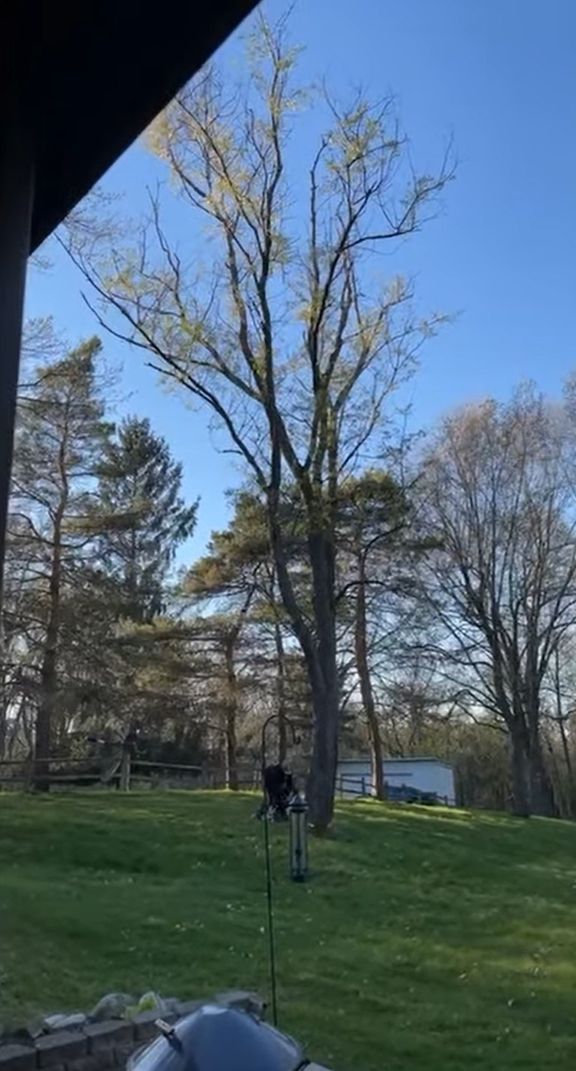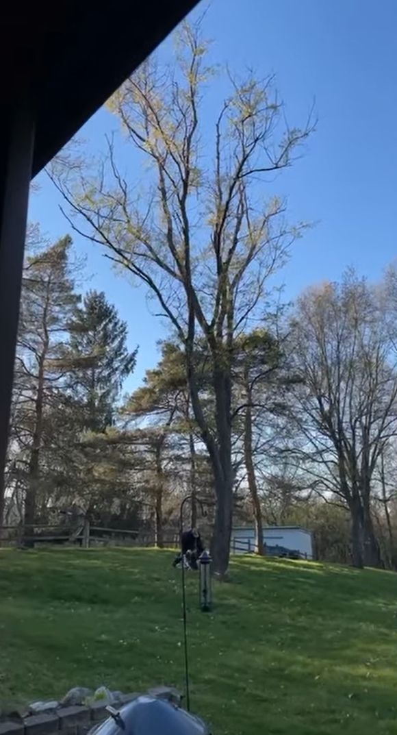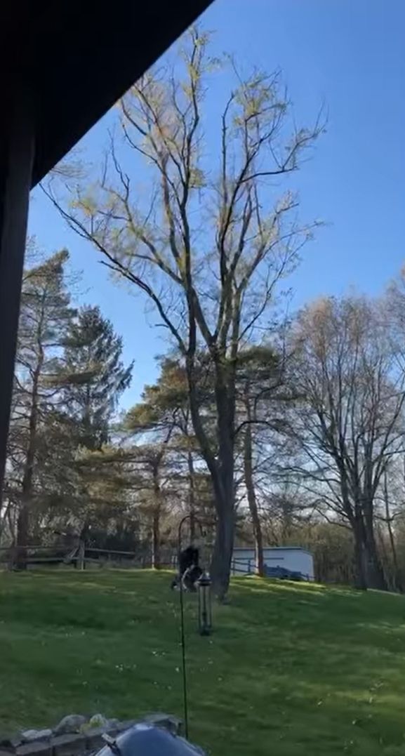 映像が映し出すのは、アメリカ・ミシガン州のとある家の庭。 人の背の何倍もある木が何本も生えております。