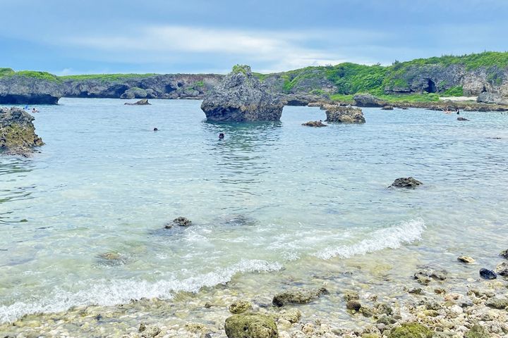 シュノーケリングスポットとして有名なビーチ。空港のある下地島にあります。足を少し水に入れるだけでも魚が泳いでいるのが見えます。
