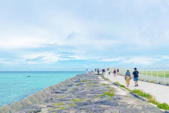 みやこ下地島空港の滑走路の北側末端部は17END(ワンセブンエンド)と呼ばれる絶景スポット。車が通れないので、気持ちのよいお散歩ロードになっています。