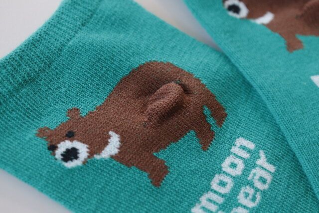 靴下に「ムーンベア」と書かれている通り、ツキノワグマです。