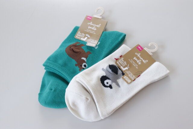 ダイソーの服飾グッズ売り場で、とんでもなく可愛い靴下を発見。ダイソーはさまざまな靴下が販売されていることでも有名ですが、今まで見たことのないようなユニークなデザインに一目惚れして即ゲットしました!動物たちのキュートな仕草がモチーフになっていて、見るたびに癒されちゃう!これは人気が出そうです…♡