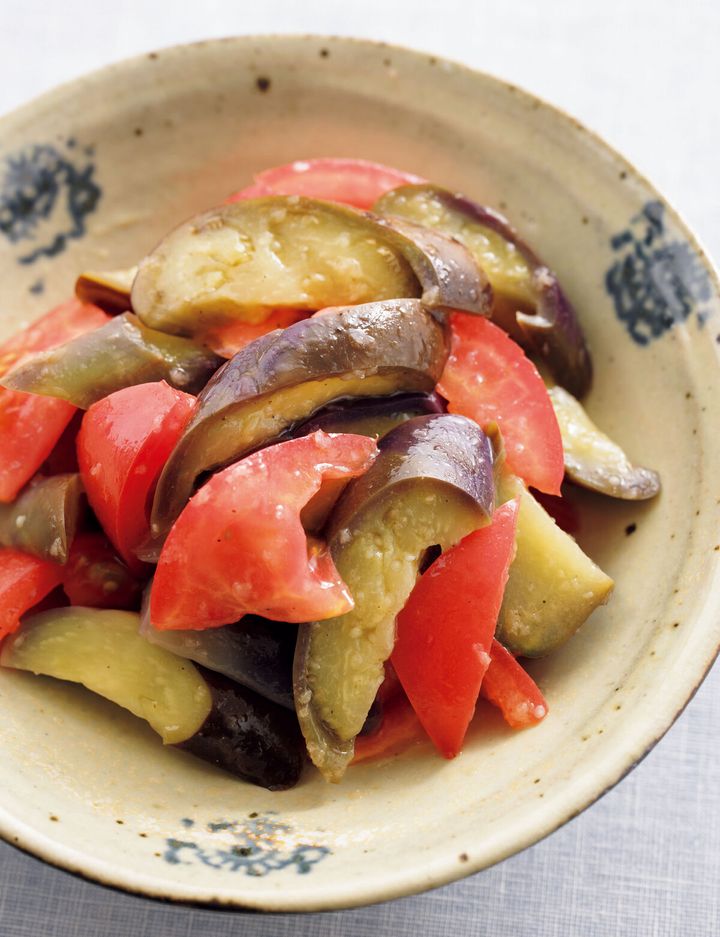 あと一品ほしいとき、ささっと作れる『蒸しなすとトマトのナムル』。